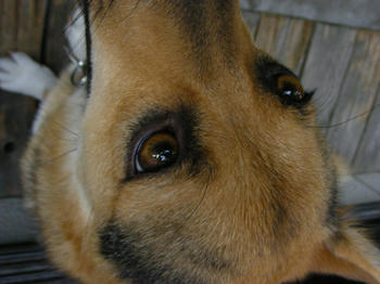 ので うちの犬とバッタ